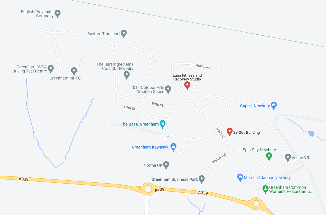 The studio is now located on Greenham Business Park Luna Fitness and Recovery Studio Suite 23-26 Building 169 Greenham Business Park Thatcham, Berkshire RG19 6HN ollie2023-03-22T21:19:22+00:00